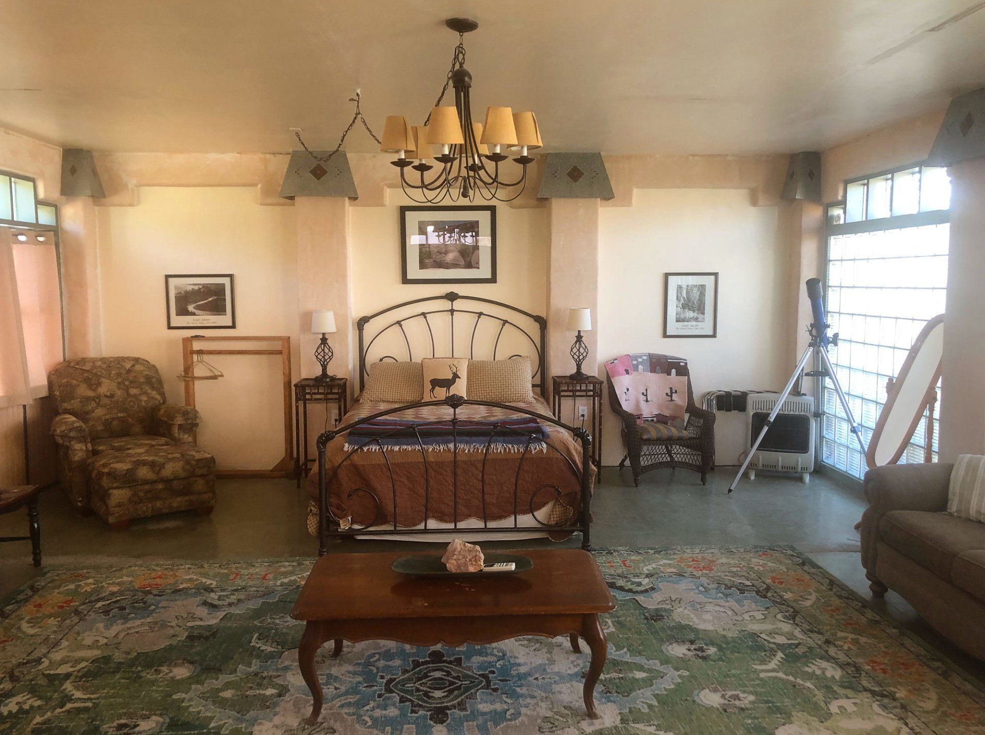 The “Studio” has two double beds and a sitting area. The Studio is the “honeymoon suite” of the property with a beautiful view looking onto the Chisos Mountains of Big Bend National Park.