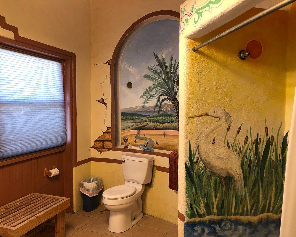 The "Gin" room, across from the kitchen, has a beautiful king-sized bed and a twin pull-out couch, as well as two very comfortable chairs for relaxing in and taking in the amazing artwork. There is also a desk that doubles as a makeup table with lighted mirror. The Gin room has a large attached bathroom.
